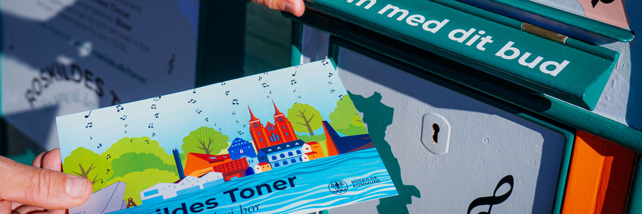 Den nye Roskildesang skal vækkes til live med inputs fra kommunens borgere. Derfor kan alle give deres bidrag på et postkort og smide det i en postkasse, der er dedikeret til projektet. Postkassen står på Stændertorvet og Roskilde bibliotekerne fra d. 18 august til d. 1. oktober 2025 (se postkassens rute i en oversigt nedenfor). På postkortet opfordres byens borgere til at skrive eller tegne noget, der viser, hvad Roskilde er for dem.