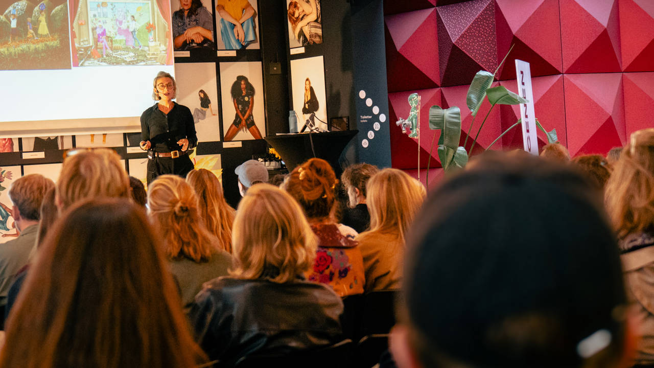 Jess Crombie på scenen til oplægget 'Who owns the stories?'. Foto: Aske Øland Kjærgaard.