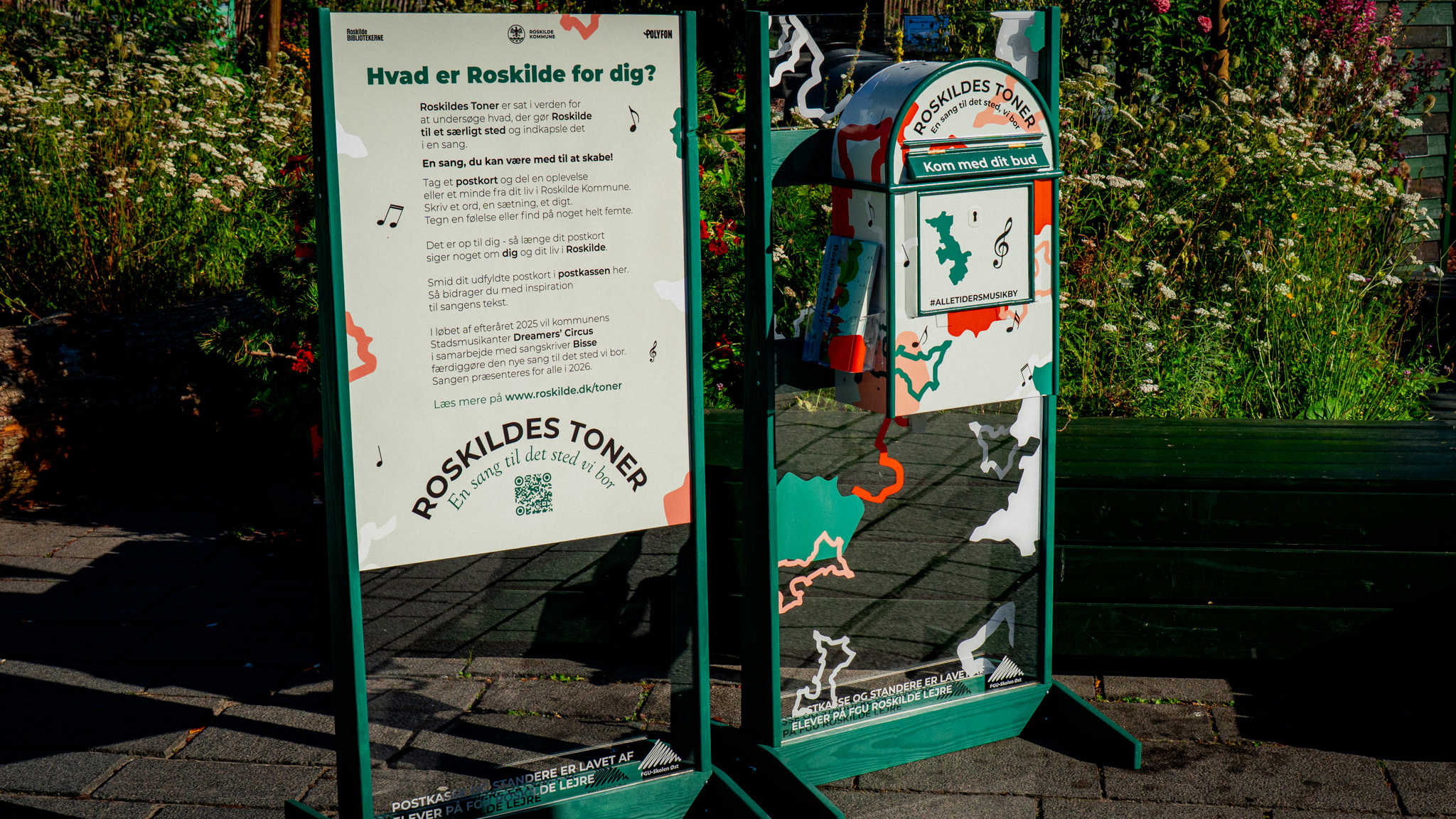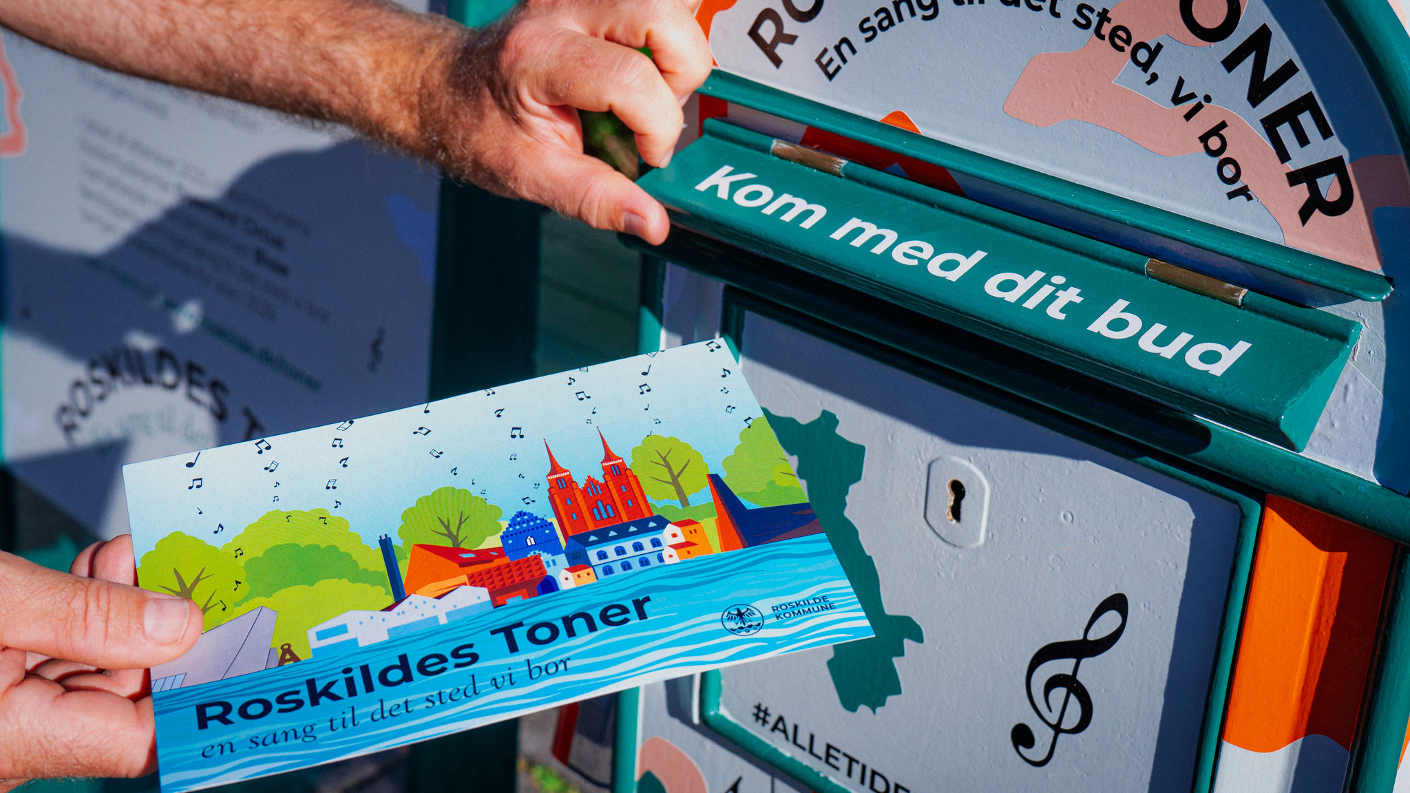 Den nye Roskildesang skal vækkes til live med inputs fra kommunens borgere. Derfor kan alle give deres bidrag på et postkort og smide det i en postkasse, der er dedikeret til projektet. Postkassen står på Stændertorvet og Roskilde bibliotekerne fra d. 18 august til d. 1. oktober 2025 (se postkassens rute i en oversigt nedenfor). På postkortet opfordres byens borgere til at skrive eller tegne noget, der viser, hvad Roskilde er for dem.